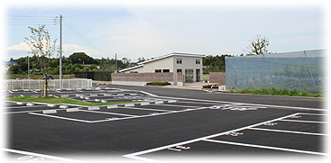 三咲霊園の前に大型駐車場を完備しています。