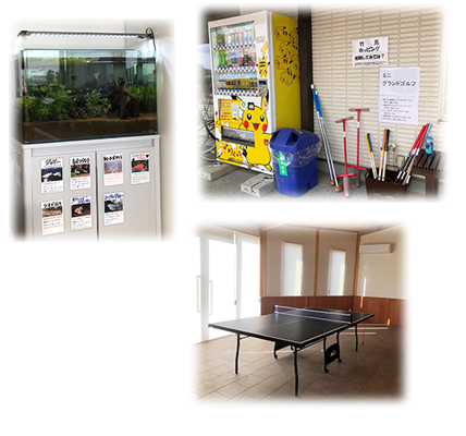 お墓参りには家族みんなで来ていただきたいという想いから、霊園内には遊具、卓球台、ミニグランドゴルフ 、アクアリウムなど大人から子供まで楽しんでいただける設備を多数用意しております。